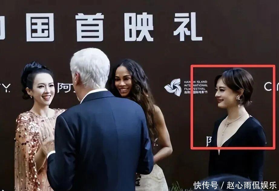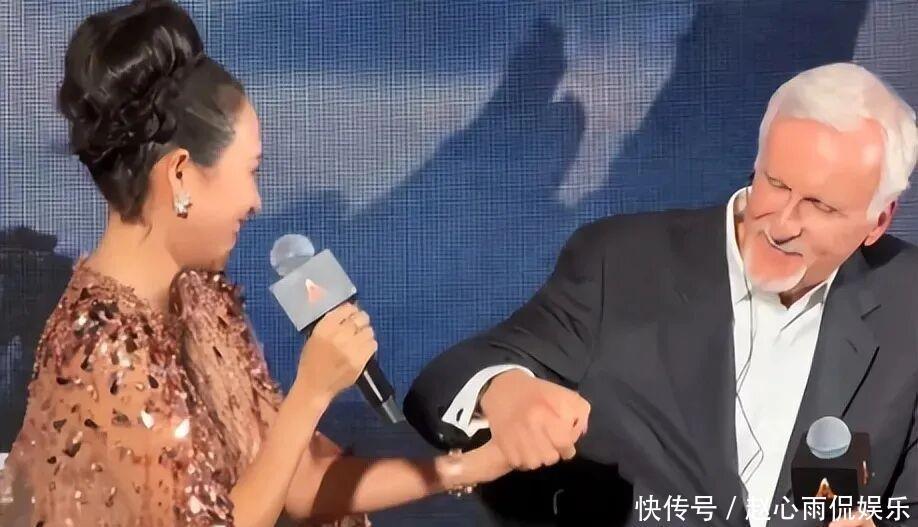 此次《阿凡达》官宣仪式上,章子怡看到导演卡梅隆和女主佐伊站在C位,立刻上前热情用英语打招呼,热切地攀谈。
