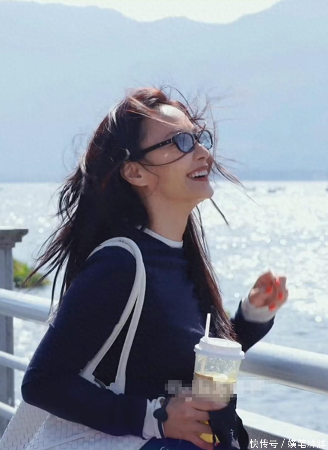 她微微侧身而立,视线悠然投向远处粼粼跃动的海面,姿态松弛却不失挺拔,仿佛正与这片蔚蓝悄然对话。阳光勾勒出她清晰柔和的下颌线条,整个人由内而外散发出一种温润明亮、蓬勃舒展的生命力——这般神采,实在难以与“年近半百”的年龄标签挂钩。